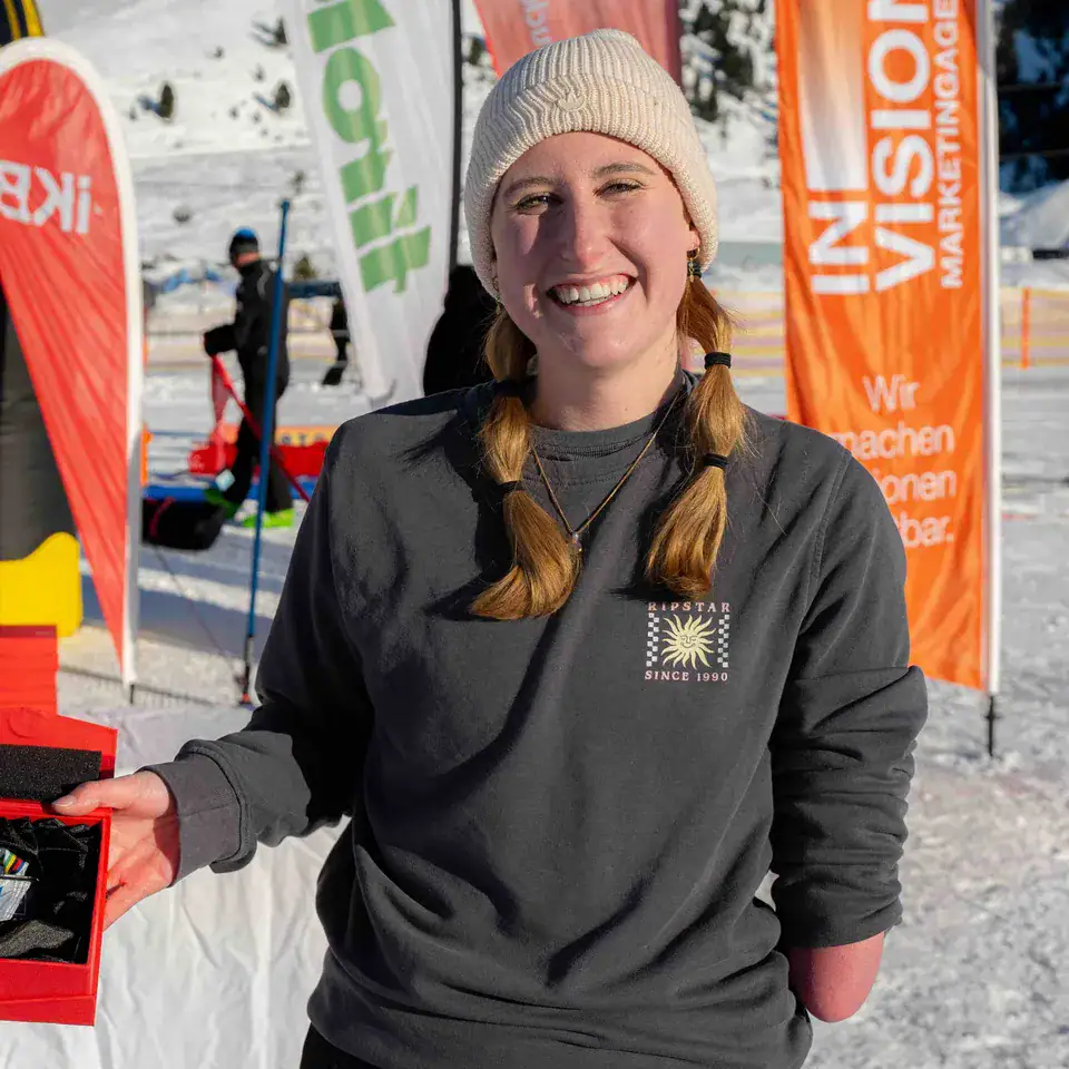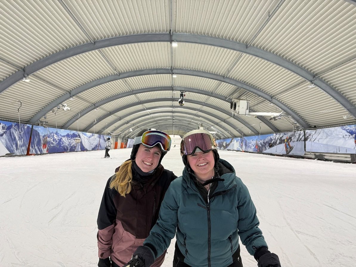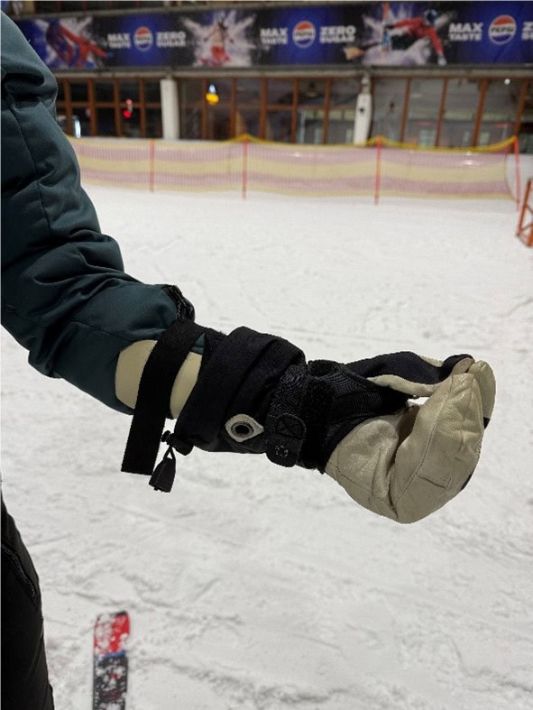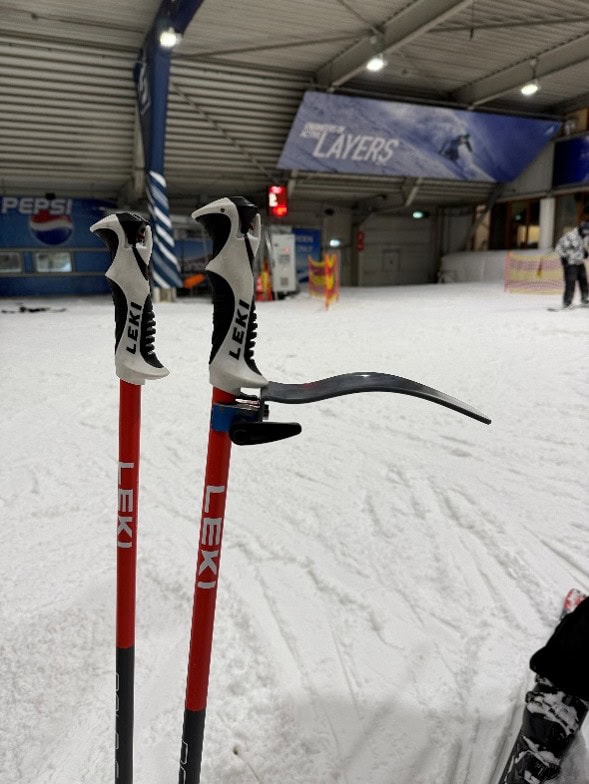 Begin dit jaar verloor Esmee Pieters aan één hand haar vingers door een ongeluk, vlak nadat ze haar Anwärter-diploma had behaald om skileraar te worden. In SnowWorld stond ze voor het eerst sinds haar ongeluk weer op ski’s. Skiën met stokken is haar vertrouwd, dus voor haar is er een speciale aanpassing gemaakt door revalidatietechnicus Ellen en ergotherapeut Madelein.