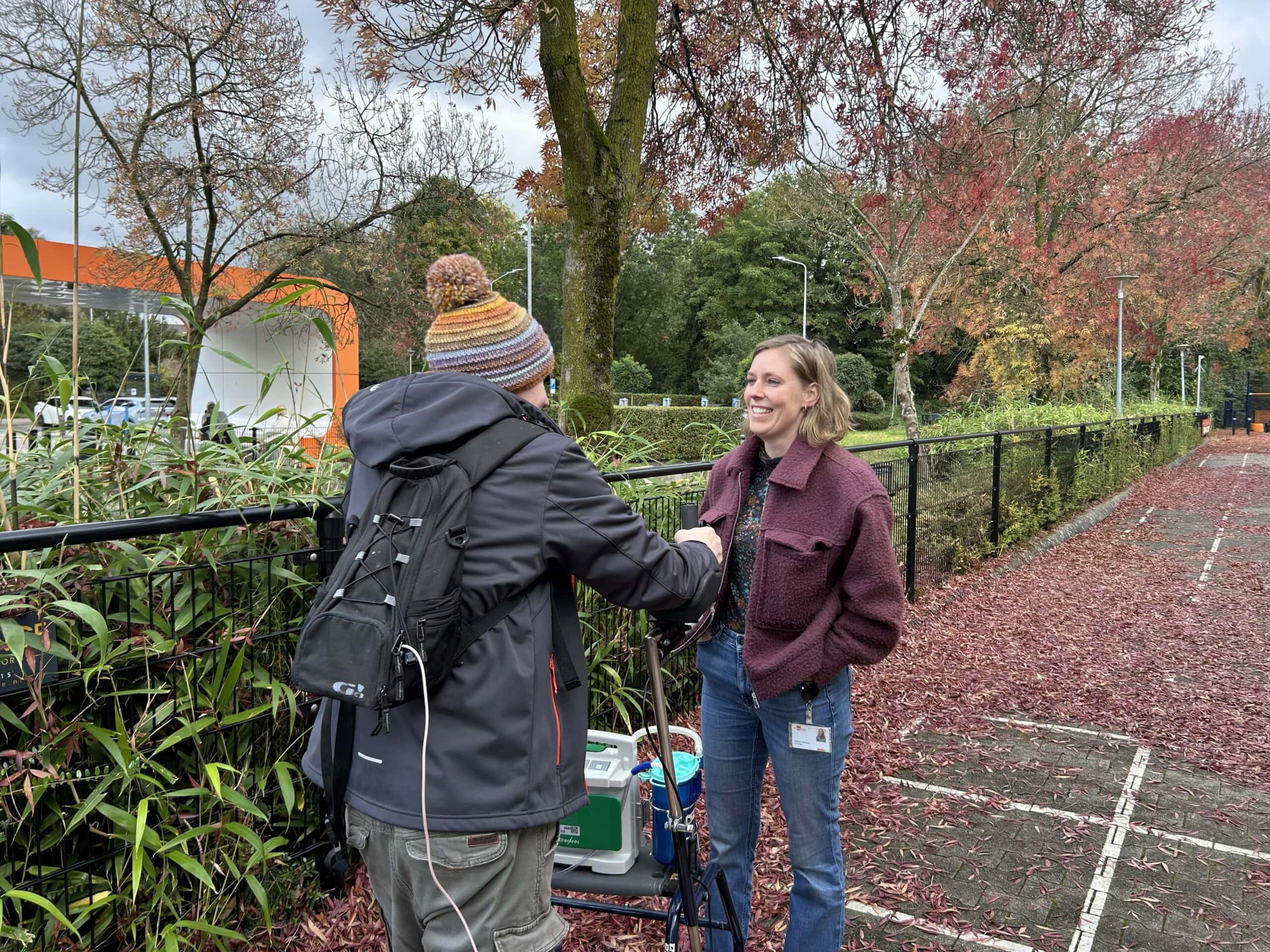 Nienke vult Peter aan: ‘De veerkracht van Peter straalt hij net zo goed uit naar mij. Je hebt dat ook nodig als je hier revalideert, maar dat moet je wel lukken. En Peter lukt dat, ook al is het heel pittig voor hem. Bijvoorbeeld zijn wil om weer zelfstandig te kunnen eten en drinken. Hoe ver weg dat nog is, Peter blijft daarvoor knokken. Dat vind ik bijzonder en leer daar zelf ook van. We kijken samen naar de toekomst ondanks zijn rotsituatie. Natuurlijk gebeurt het wel eens dat wanneer ik binnenkom zijn stemming minder is, maar als we dan weer buiten komen en gezellig aan het kletsen zijn, slaat het om. Dat is de positieve wisselwerking tussen ons. Ik vind het fijn dat ik dit voor hem kan betekenen en andersom geldt voor mij precies hetzelfde.’