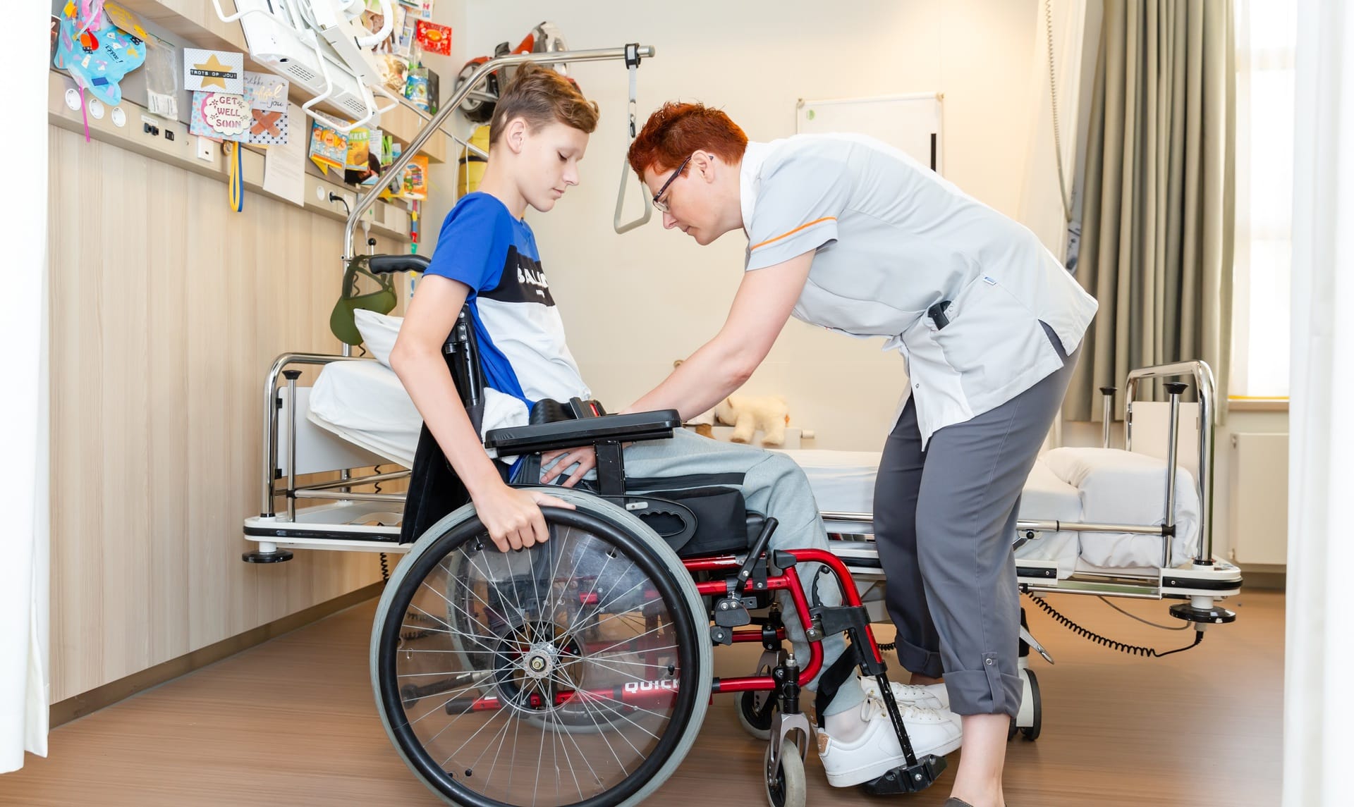 Hoelang je ouder mag inroomen hangt af van hoe het met jou en jouw revalidatie gaat. Wanneer je ouder komt inroomen, krijgen jullie een folder met meer informatie. Komt er geen ouder inroomen? Dan zijn je ouders of andere belangrijke mensen altijd welkom op de afdeling tijdens therapie. Het is belangrijk om dit vooraf af te stemmen met je arts of verpleegkundige.